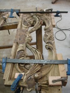 - Restauration réalisé par : Denis AUGER – Ebéniste/Restaurateur et Pascal POIRIER – Sculpteur/Ornemaniste